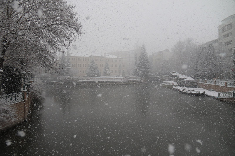 Eskişehir’de sabahın erken saatlerinde lapa lapa yağan kar, şehir merkezinde kartpostallık manzaralar oluşturdu.