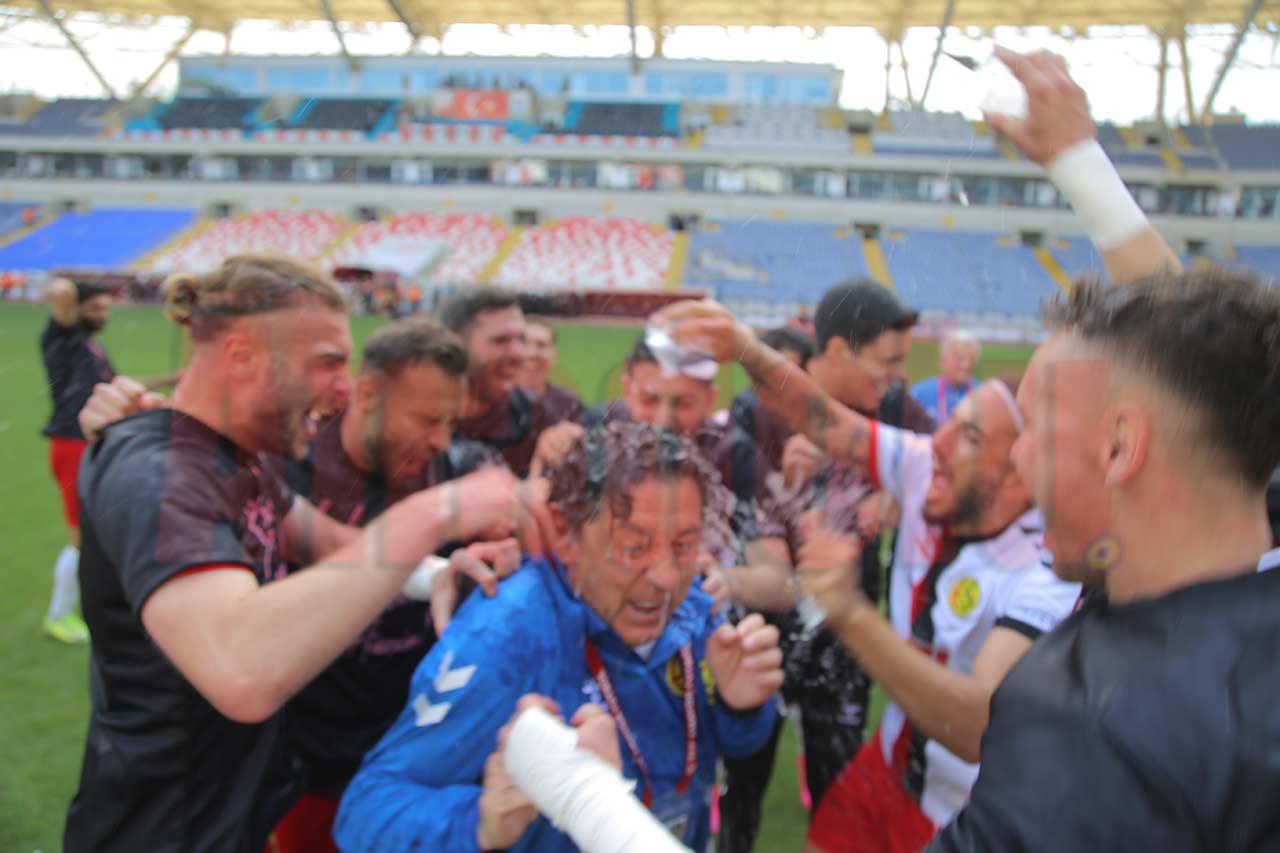 Eskişehirspor, şampiyonluğunu söke söke aldığı Mezitli 33 Spor karşılaşmasında, hakemin çaldığı son düdüğün ardından sahada böyle sevindi