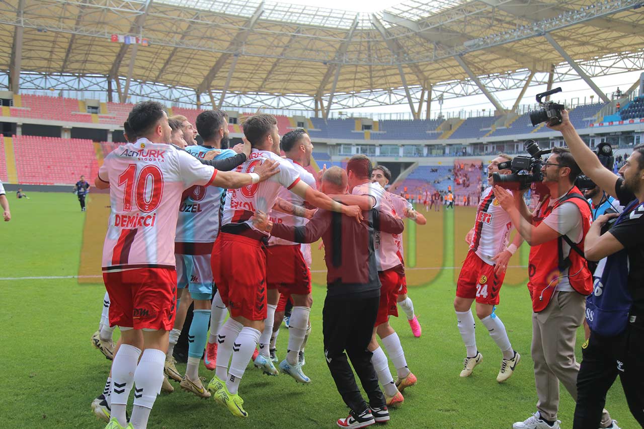 Eskişehirspor, şampiyonluğunu söke söke aldığı Mezitli 33 Spor karşılaşmasında, hakemin çaldığı son düdüğün ardından sahada böyle sevindi