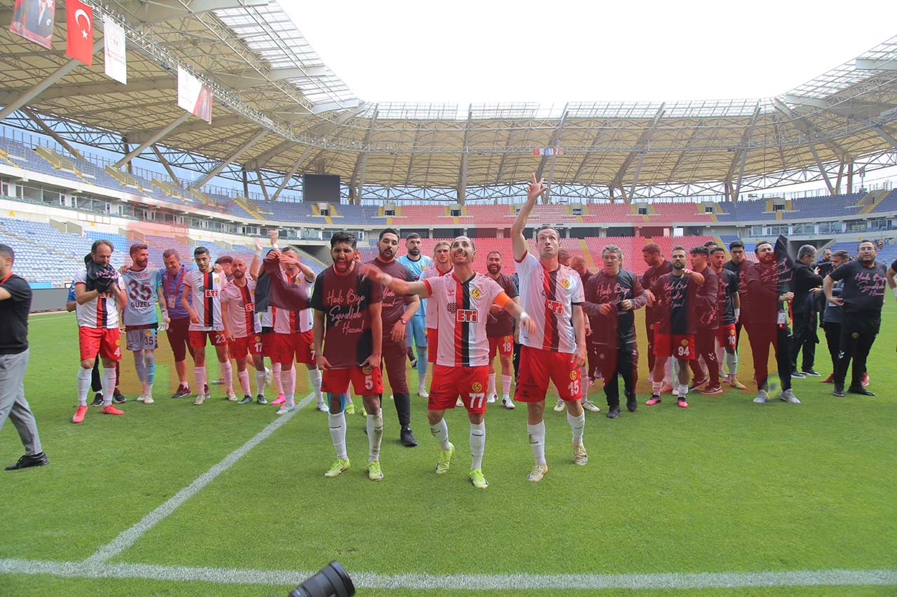 Eskişehirspor, şampiyonluğunu söke söke aldığı Mezitli 33 Spor karşılaşmasında, hakemin çaldığı son düdüğün ardından sahada böyle sevindi