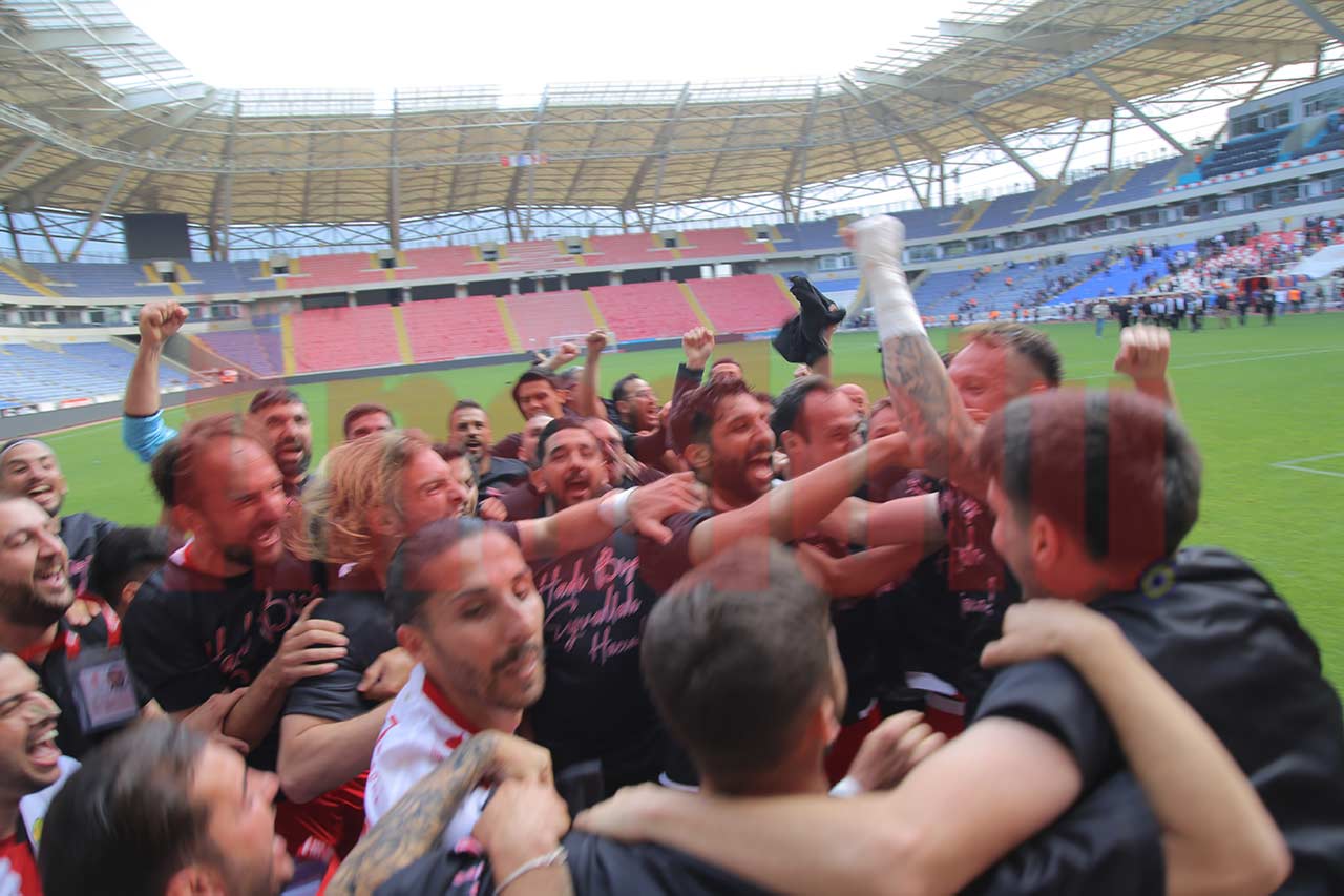 Eskişehirspor, şampiyonluğunu söke söke aldığı Mezitli 33 Spor karşılaşmasında, hakemin çaldığı son düdüğün ardından sahada böyle sevindi