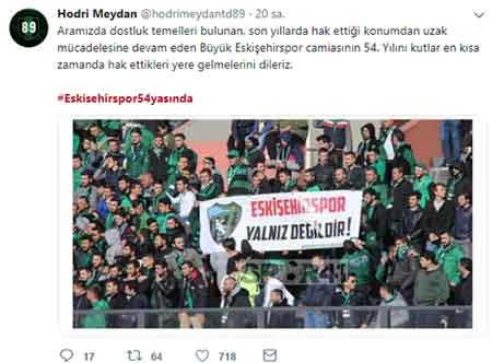 19 Haziran 1965’te kurulan Anadolu Yıldızı Eskişehirspor’un, 54. Yaş günü spor ve siyaset camiasının önemli isimlerinin de arasında olduğu yüzlerce kişi tarafından Twitter ve Facebook’ta paylaşım rekoru kırdı