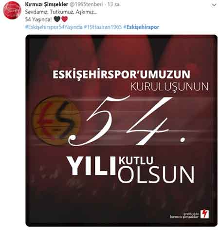19 Haziran 1965’te kurulan Anadolu Yıldızı Eskişehirspor’un, 54. Yaş günü spor ve siyaset camiasının önemli isimlerinin de arasında olduğu yüzlerce kişi tarafından Twitter ve Facebook’ta paylaşım rekoru kırdı