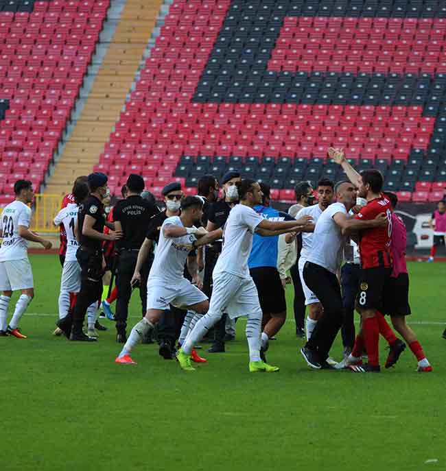 Eskişehirspor'un ligden düşerken bile onuruyla mücadele etmesini sindiremeyen Altay Teknik Direktörü Yalçın Koşukavak'ın Eskişehirspor yedek kulübesine yönelik, "Kimden nemalanıyorsunuz, küme düşen takım böyle oynar mı" sözleri üzerine ortalık savaş alanına döndü.