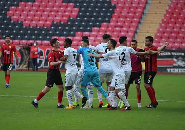 Eskişehirspor'un ligden düşerken bile onuruyla mücadele etmesini sindiremeyen Altay Teknik Direktörü Yalçın Koşukavak'ın Eskişehirspor yedek kulübesine yönelik, "Kimden nemalanıyorsunuz, küme düşen takım böyle oynar mı" sözleri üzerine ortalık savaş alanına döndü.