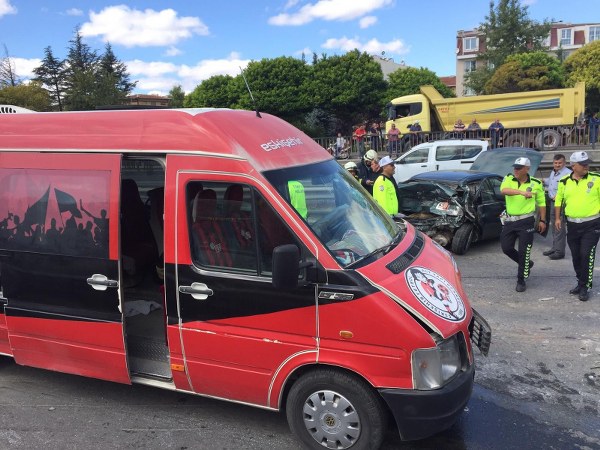 Eskişehir’de, Eskişehirspor U12 oyuncularını taşıyan minibüs zincirleme kazaya karıştı. Üç aracın birbirine girdiği trafik kazasında, U12 antrenörü ve 1 oyuncu ile birlikte toplam 3 kişi yaralandı.