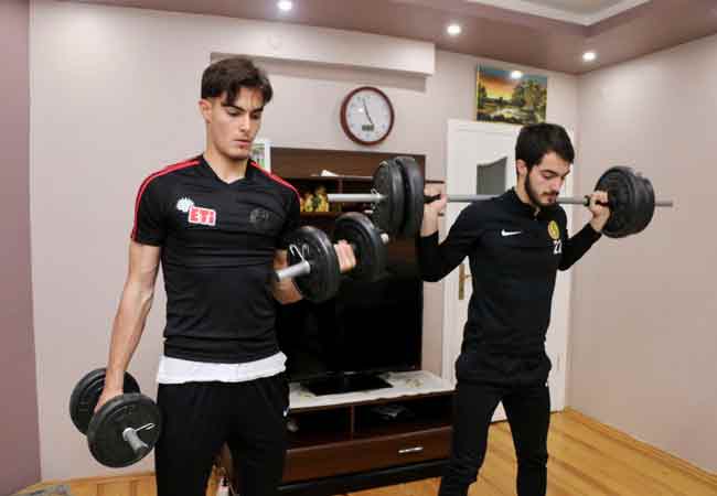 TFF 1. Lig ekiplerinden Eskişehirspor'un kardeş futbolcuları Bedirhan (21) ve Metehan (17) Altunbaş, yeni tip koronavirüs (Kovid-19) salgınıyla mücadele kapsamında lige verilen arada formda kalmak için evlerinde birlikte çalışıyor.