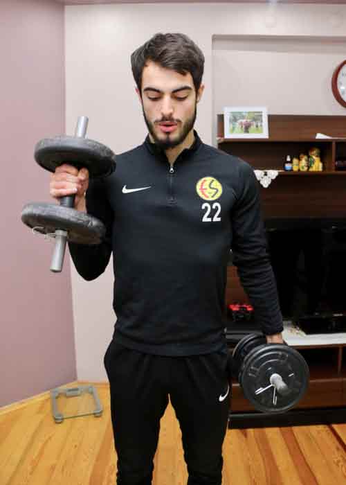 TFF 1. Lig ekiplerinden Eskişehirspor'un kardeş futbolcuları Bedirhan (21) ve Metehan (17) Altunbaş, yeni tip koronavirüs (Kovid-19) salgınıyla mücadele kapsamında lige verilen arada formda kalmak için evlerinde birlikte çalışıyor.
