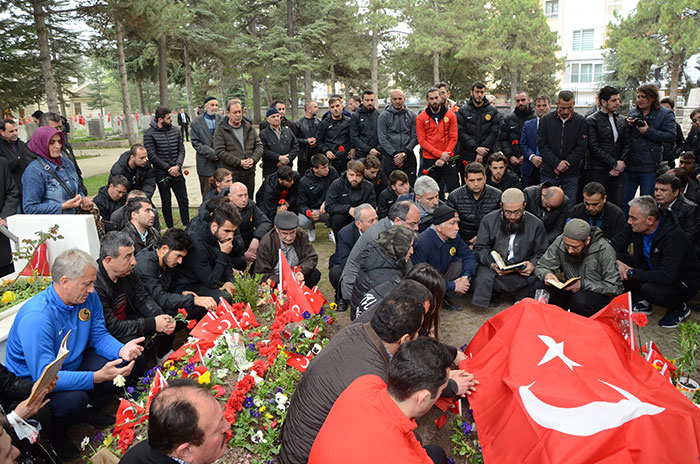 Eskişehir'de son yolculuğuna uğurlanan Mithat Dunca'nın vasiyeti üzerine Eskişehirsporlu oyuncular bugün şehitliği ziyaret etti.