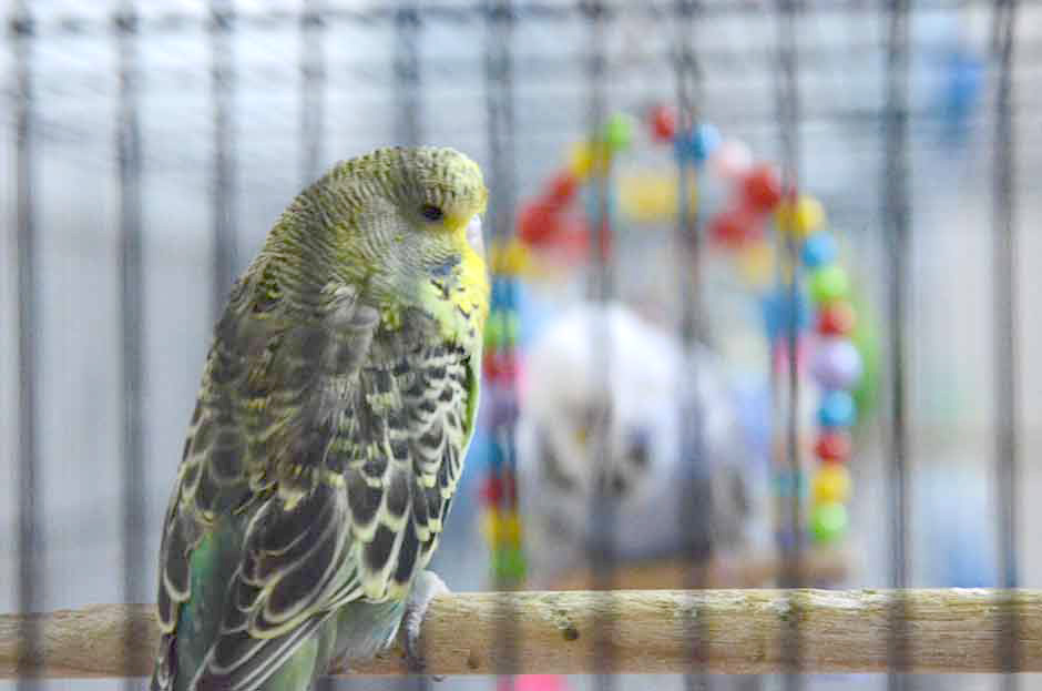 Evinin salonunda 60 muhabbet kuşu besliyor