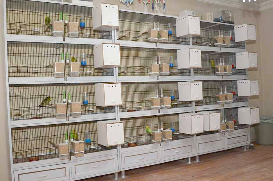 Evinin salonunda 60 muhabbet kuşu besliyor