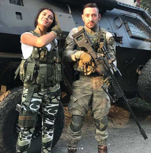 Operasyona katılan askerleri ziyaret eden ve kamuflaja benzer pantolonu ile dikkat çeken Sabriye Şengül, çelik yelek giydi, silah kuşandı.