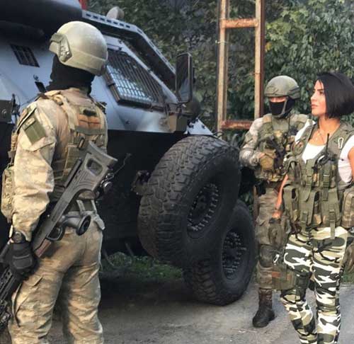 Operasyona katılan askerleri ziyaret eden ve kamuflaja benzer pantolonu ile dikkat çeken Sabriye Şengül, çelik yelek giydi, silah kuşandı.