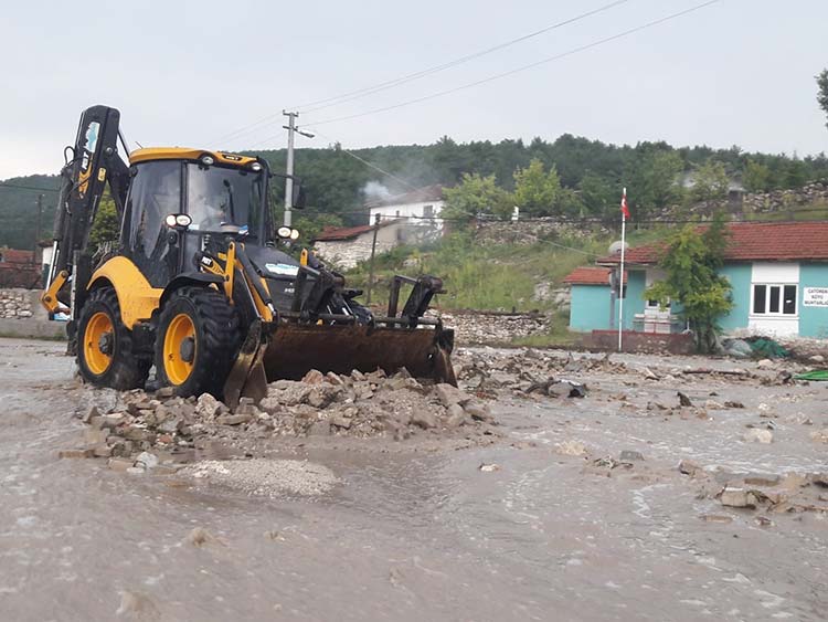 Eskişehir’de yoğun yağış ulaşımda aksamalara sebep olurken Seyitgazi ilçe karayolu bir süreliğine ulaşıma kapandı, bazı araçlar mahsur kaldı.