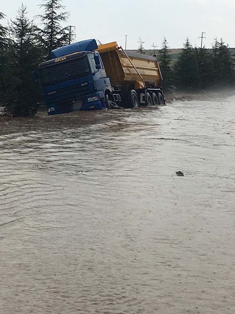 Eskişehir’de yoğun yağış ulaşımda aksamalara sebep olurken Seyitgazi ilçe karayolu bir süreliğine ulaşıma kapandı, bazı araçlar mahsur kaldı.