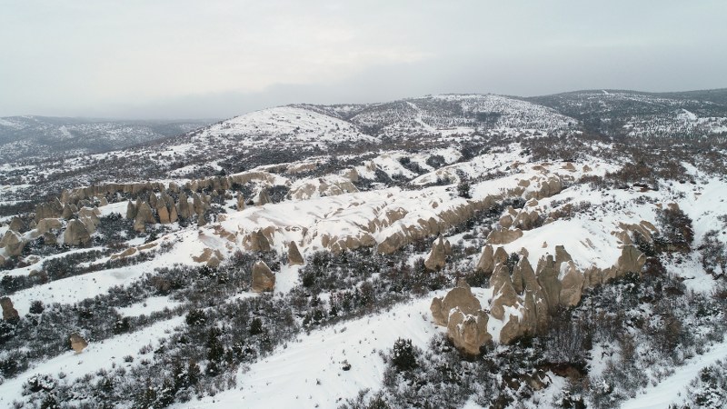 Afyonkarahisar, Ankara, Eskişehir ve Kütahya'da geniş bir alanı kapsayan, Türkiye'nin önemli turizm merkezlerinden Frig Vadisi, kar yağışı sonrası beyaza büründü.