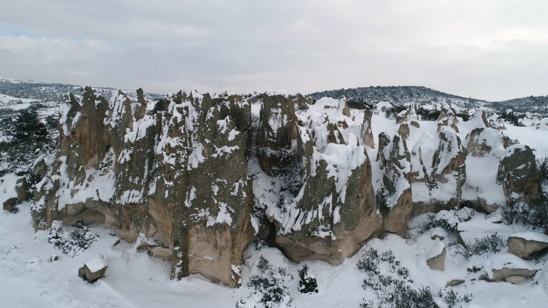 Afyonkarahisar, Ankara, Eskişehir ve Kütahya'da geniş bir alanı kapsayan, Türkiye'nin önemli turizm merkezlerinden Frig Vadisi, kar yağışı sonrası beyaza büründü.