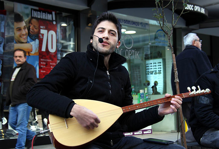 Erzurumlu bir vatandaş, berberlik mesleğini bıraktıktan sonra şehir şehir gezerek sokak müzisyenliği yaparak geçimini sağlıyor.