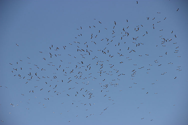 Göçe hazırlanan leylekler Eskişehir semalarında