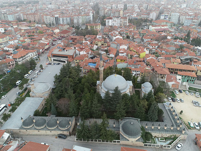 Fotoğrafta, Eskişehir'de, Kanuni Sultan Süleyman'ın veziri Çoban Mustafa Paşa tarafından 1525 yılında inşa ettirilen ve kentin en önemli anıtsal yapılarından olan Kurşunlu Külliyesi görülüyor.
