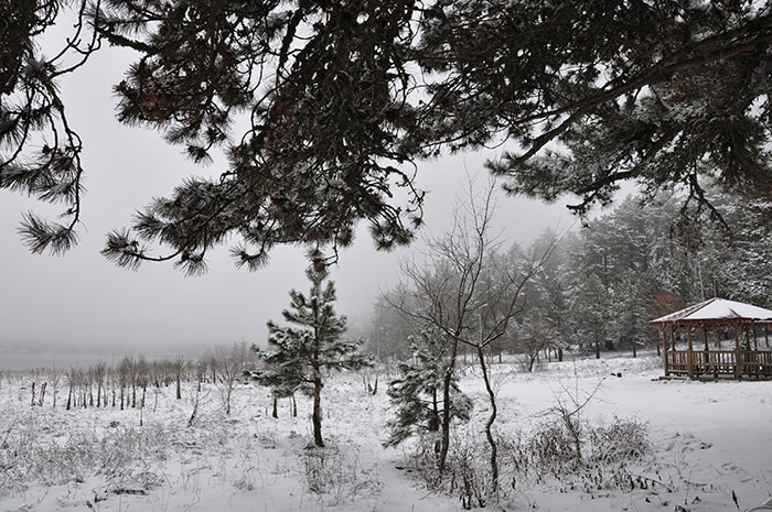 Kütahya Simav’ın bin 450 rakımlı tabiat parkı, hava sıcaklıklarının düşmesiyle başlayan kar yağışıyla kartpostallık görüntülere sahne oldu.