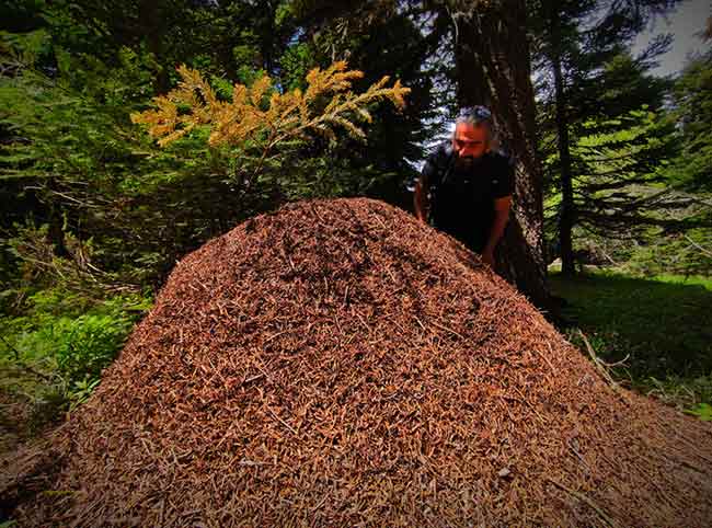 Afrika’da belgesellerden görmeye alıştığımız devasa büyüklükteki dev karınca yuvaları Uludağ’da ortaya çıktı. Özellikle kene düşmanı olan kırmızı orman karıncalarının yaptıkları yuvalar, çam ağaçlarının diplerinde ilginç görüntüler oluşturuyor.