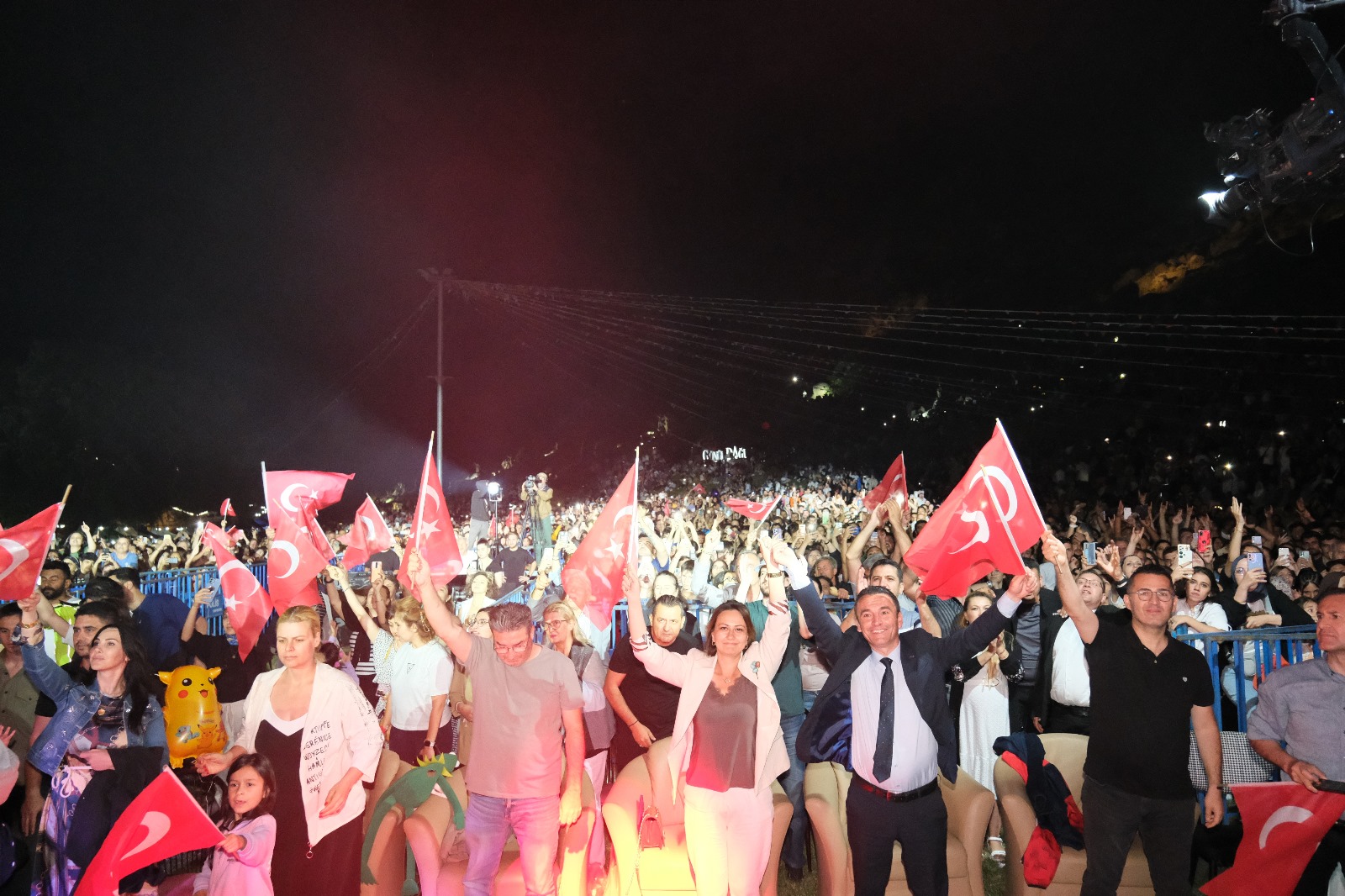 Sivrihisar Belediyesi tarafından düzenlenen 8.Uluslararası Nasreddin Hoca Kültür ve Sanat Festivali ünlü sanatçı Haluk Levent’in unutulmaz sahne performansı ile sona erdi. Uluslararası Nasreddin Hoca Kültür ve Sanat Festivali büyük bir coşku içerisinde sona erdi. Ünlü sanatı Haluk Levent Sivrihisar’da hafızalara kazınan unutulmaz bir konsere imza attı. Sevilen şarkılarını 60 binin üzerinde vatandaşla birlikte söyleyen Haluk Levent sevenlerine kendini hayran bıraktı. Açık Hava Heykel Müzesi Festival alanını hınca hınç dolduran vatandaşlar Haluk Levent konseri ile eğlendiler. Sivrihisar Belediye Başkanı Habil Dökmeci ünlü sanatçıya çiçek ve hediye takdim ederken “Sizleri burada ağırlamaktan mutluluk duyduk. Festivalimize katılan tüm hemşerilerimize de sonsuz teşekkür ediyorum. Sivrihisar sizlerle çok güzel oldu” dedi. Ünlü sanatçı Haluk Levent konseri öncesinde ise Eskişehir’in sevilen sesi Ömer Ulutaş ise ön sahne yaparak alanı dolduran vatandaşları eğlendirdi.