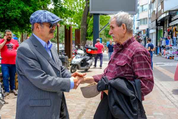 Eskişehir Büyükşehir Belediye Başkanı Prof. Dr. Yılmaz Büyükerşen, Hamamyolu Caddesi’nde esnaf ile bir araya geldi. Vatandaşların fotoğraf çektirme taleplerini kırmayan Büyükerşen, esnafın çay teklifini de geri çevirmedi.