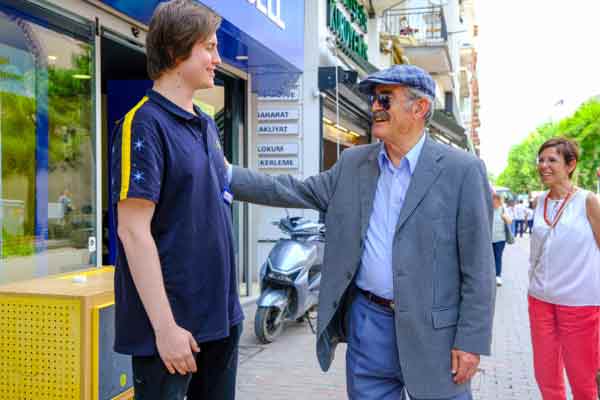 Eskişehir Büyükşehir Belediye Başkanı Prof. Dr. Yılmaz Büyükerşen, Hamamyolu Caddesi’nde esnaf ile bir araya geldi. Vatandaşların fotoğraf çektirme taleplerini kırmayan Büyükerşen, esnafın çay teklifini de geri çevirmedi.