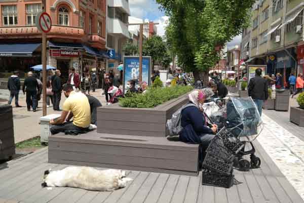 Eskişehir’de koronavirüs tedbirleri kapsamında aylar önce Hamamyolu bölgesindeki oturma yerlerine çekilen şeritler kaldırıldı.