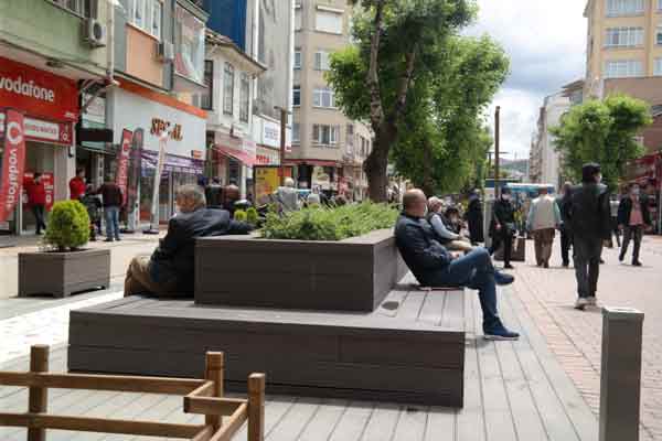 Eskişehir’de koronavirüs tedbirleri kapsamında aylar önce Hamamyolu bölgesindeki oturma yerlerine çekilen şeritler kaldırıldı.