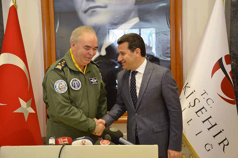 Hava Kuvvetleri Komutanı Orgeneral Abidin Ünal, kendi kullandığı F-16 savaş uçağıyla geldiği Eskişehir’de Vali Azmi Çelik’i makamında ziyaret etti.