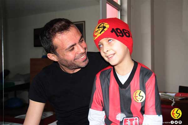 Spor Toto 1. Lig ekiplerinden Eskişehirspor'un görme engelli taraftarı 11 yaşındaki Mehmet Salih Karadağ, hayranı olduğu futbolcularla buluştu.