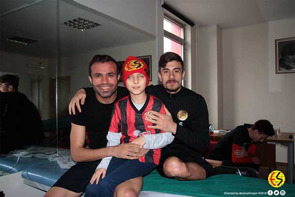 Spor Toto 1. Lig ekiplerinden Eskişehirspor'un görme engelli taraftarı 11 yaşındaki Mehmet Salih Karadağ, hayranı olduğu futbolcularla buluştu.