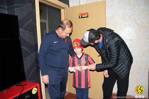 Spor Toto 1. Lig ekiplerinden Eskişehirspor'un görme engelli taraftarı 11 yaşındaki Mehmet Salih Karadağ, hayranı olduğu futbolcularla buluştu.