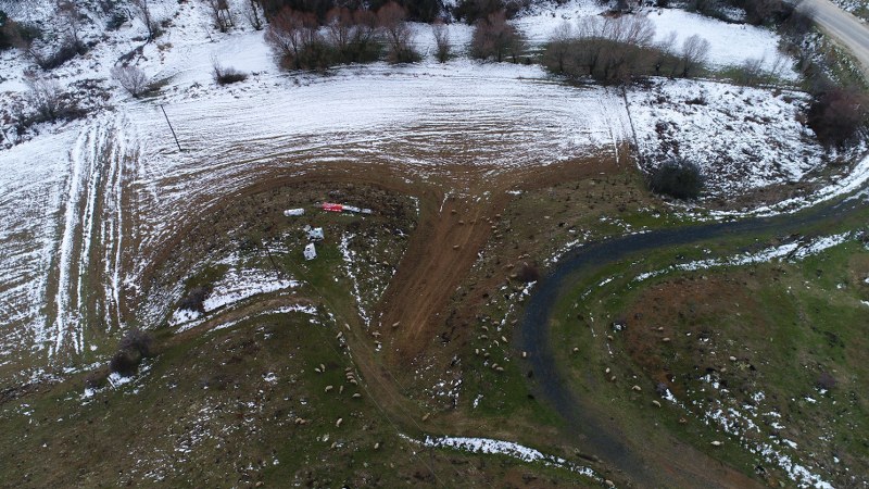Soğuk havalara aldırış etmeden çalışan çobanlar, zorlu kış mesailerine başlıyor.