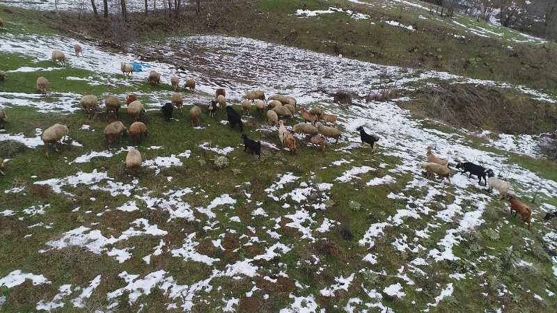 Soğuk havalara aldırış etmeden çalışan çobanlar, zorlu kış mesailerine başlıyor.