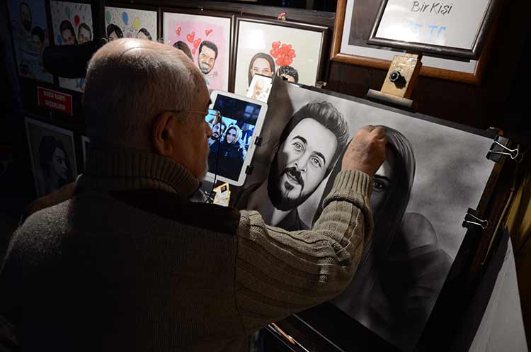Eskişehir’de kuru fırça tekniği ile karikatür ve portre çizen Ressam Münir Yeşil, çocukluktan beri uğraştığı resim sanatını eğitim almadan geliştirdiğini söyledi.