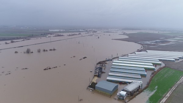 Öte yandan bir büyükbaş hayvan çiftliğinde 2 bin hayvan mahsur kaldı. İhlas Haber Ajansı (İHA) muhabirleri, traktör ile çiftliğe girerek sular altında kalan hayvanları görüntüledi. Sel sebebiyle hayvanlara traktörlerle sadece saman verilirken, ahırda hayvanlar sular altına kaldı. Çiftlik sahibi, bir an önce suların tahliye edilmesi gerektiğini söyledi. Su içinde kalan bazı hayvanların soğuktan titremesi dikkat çekti.
