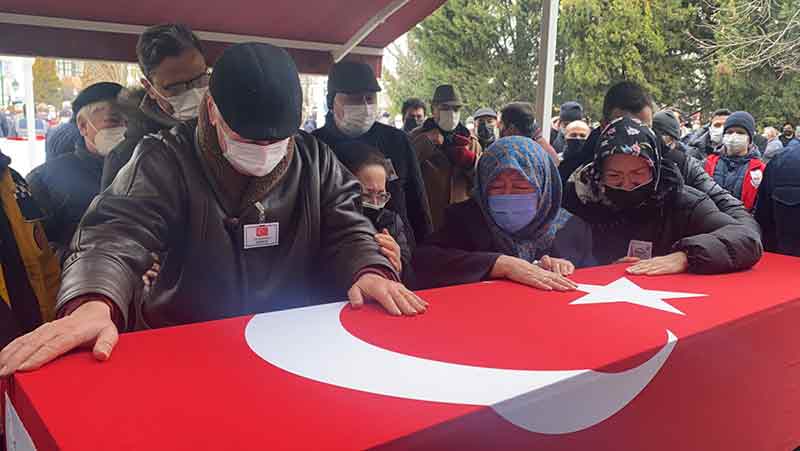 Şırnak’ın Cizre ilçesindeki hudut karakoluna teröristlerin düzenlediği havan saldırısında, terhisine 20 gün kala şehit olan Piyade Er Tarık Tarcan, memleketi Eskişehir’de son yolculuğuna uğurlandı. Acılı baba Hilmi Tarcan, şehidin tabutu başında, “Hakkını helal et oğlum” diyerek oğlundan son kez helallik istedi.