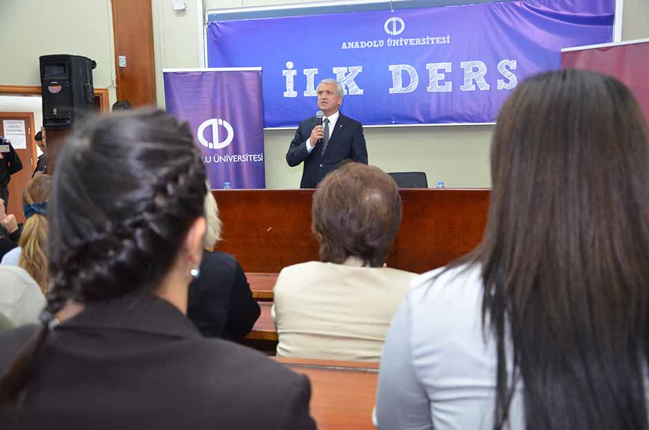 Anadolu Üniversitesi Rektörü Prof. Dr. Naci Gündoğan, İktisadi ve İdari Bilimler Fakültesi’ne bu yıl yerleşen öğrencilerle bir araya gelerek, 2016-2017 eğitim-öğretim yılının ilk dersini kendisi verdi.