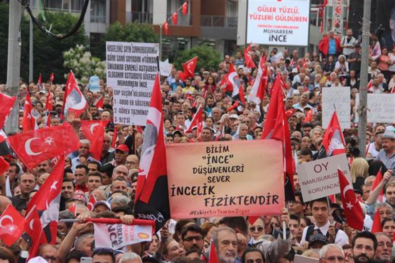 Cumhurbaşkanı Adayı Muharrem İnce Eskişehir'e geldi, büyük bir kalabalığa seslenirken "bu kadar miting yaptım, böylesini görmedim" diyerek söze başladı. İnce, "termik santrali seçilirsem yaptırmayacağım. Eskişehir'e tarifeli uçak seferi getireceğim. Eskişehir'i Gemlik'e tren yoluyla bağlayacağım" diye konuştu.