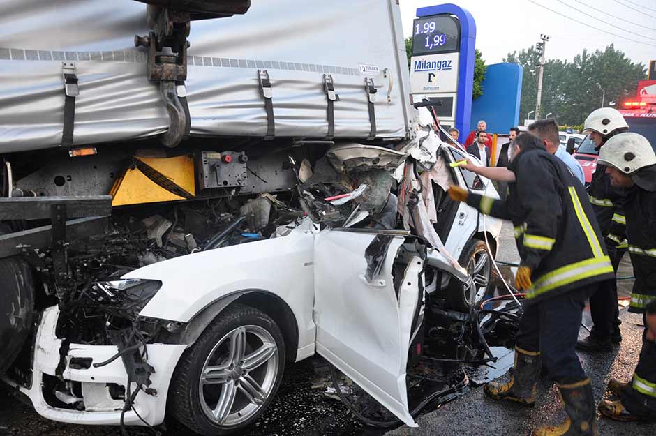 Bursa’nın İnegöl İlçesi’nde, park halindeki TIR’a arkadan çarpan otomobil hurdaya döndü. Kazada otomobili kullanan 27 yaşındaki Mustafa Özdoğru hava yastığı sayesinde yaralı kurtuldu.