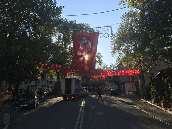 Bilecik'in İnhisar ilçesinde aklı dengesi yerinden olmayan bir şahıs tarafından yakılan 3 Türk bayrağı sonrası ilçe Türk Bayrakları ile donatıldı. Bayrakları yakılan 3 kahveci yerlerine yenilerini astılar.