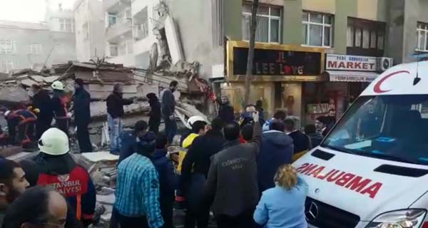 İstanbul Zeytinburnu'nda bir bina çöktü. Olay yerine çok sayıda itfaiye ve ambulans gönderildi. İçinde 56 daire bulunan 7 katlı binanın 2015 yılında tahliye edildiği açıklandı. Bina çöktüğü sırada kaldırımda bulunan kişiler enkaz altında kaldı. 1 kişinin hayatını kaybettiği, 5 kişinin yaralandığı bildiriliyor. Enkaz altında kalan olup olmadığının tespiti için çalışmalar sürüyor.