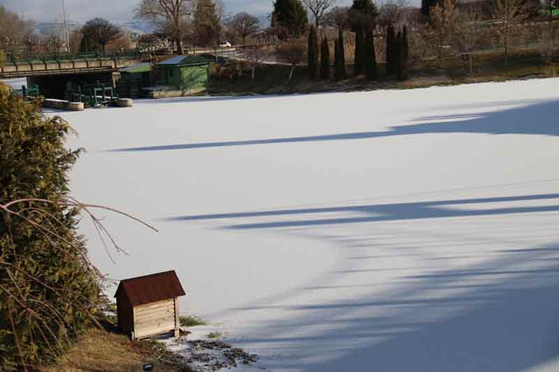 Eskişehir’de hava sıcaklıklarının sıfırın altına düşmesiyle birlikte bir kısmı buz tutan Porsuk Çayı kartpostallık görüntüler oluşturdu.