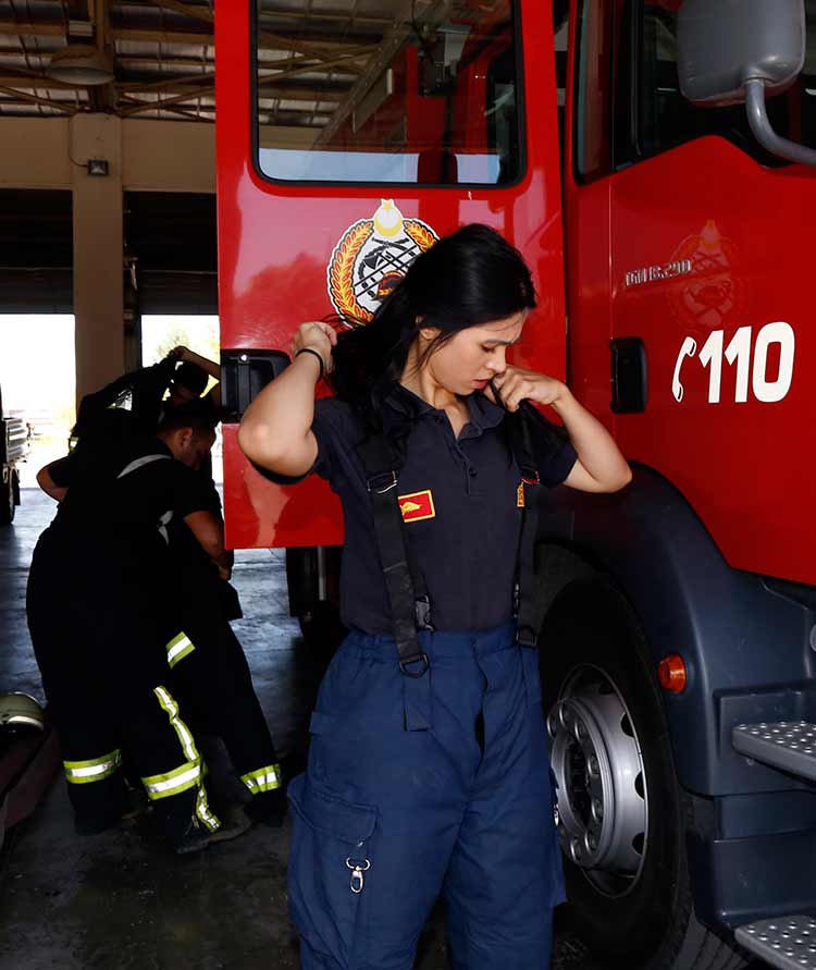 Eskişehir Büyükşehir Belediyesi İtfaiye Daire Başkanlığının stajyerlerinden Karabük Üniversitesi Meslek Yüksek Okulu Sivil Savunma ve İtfaiyecilik Programı öğrencisi Hilal Mazlum, her türlü zorluğu aşarak kadınların da bu mesleği yapabileceklerine inanıyor ve gelecekte ülkeye faydalı bir itfaiyeci olmak istiyor.