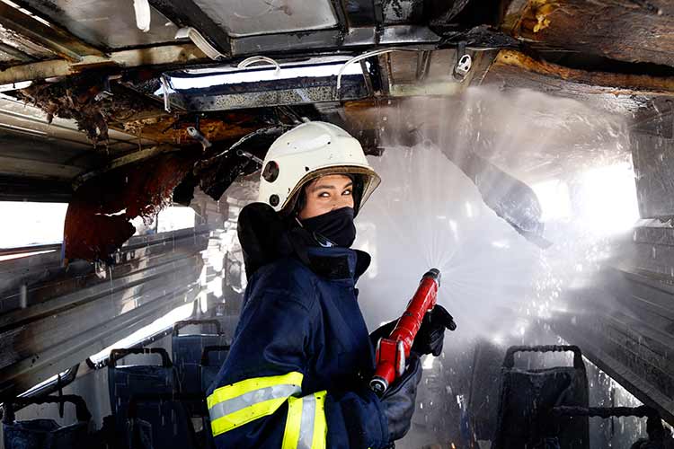 Eskişehir Büyükşehir Belediyesi İtfaiye Daire Başkanlığının stajyerlerinden Karabük Üniversitesi Meslek Yüksek Okulu Sivil Savunma ve İtfaiyecilik Programı öğrencisi Hilal Mazlum, her türlü zorluğu aşarak kadınların da bu mesleği yapabileceklerine inanıyor ve gelecekte ülkeye faydalı bir itfaiyeci olmak istiyor.