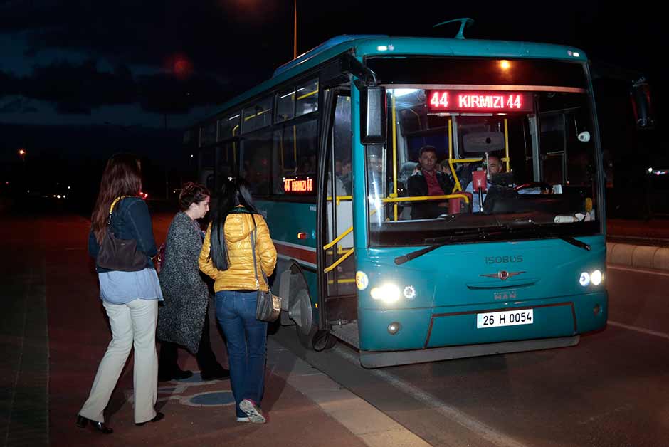 Eskişehir Büyükşehir Belediyesi, toplu taşıma otobüslerine binen kadın yolcuların, 22.00-24.00 saatlerinde durak beklemeden güzergahta istedikleri yerde inebilmesine imkan sağlayan projeyi başlattı.