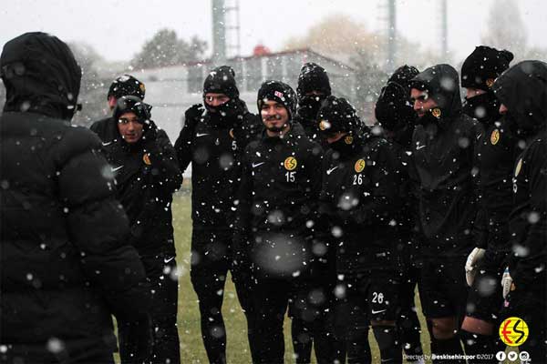 Eskişehirspor yoğun kar yağışı altında çalıştı...